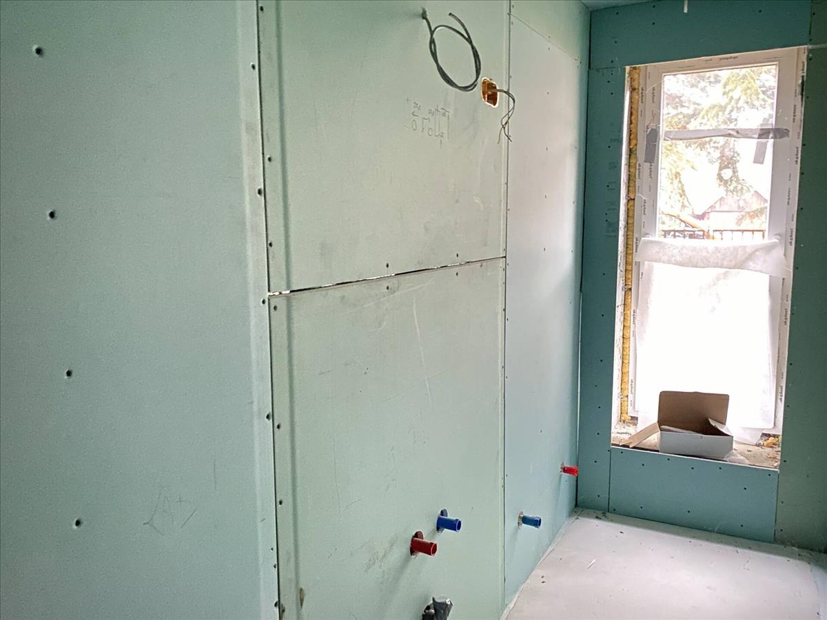 A belső falak gipszkartonozva, a megfelelő rétegrenddel ellátva, üveggyapottal szigetelve.