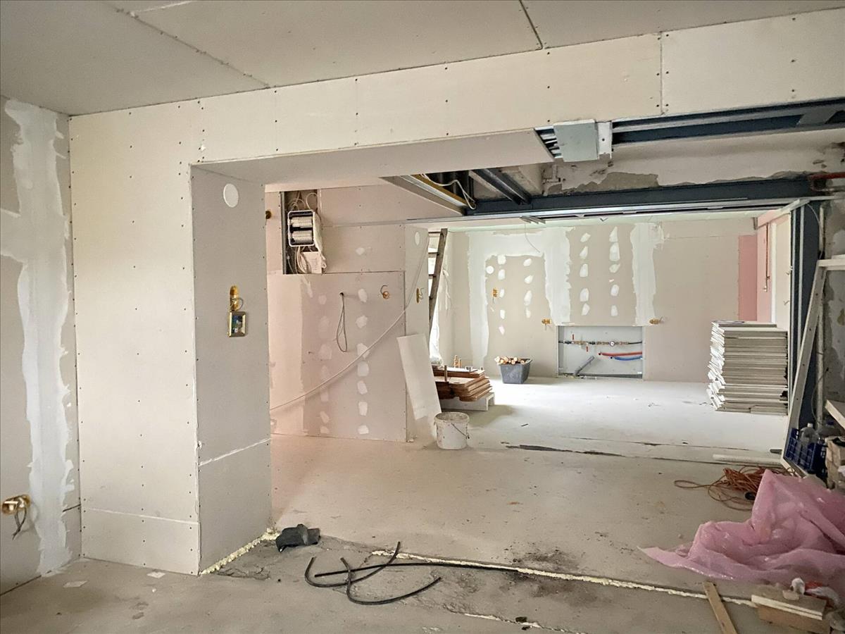A két szintet külső és belső feljárókkal is meg lehet közelíteni. a belső összekötése már meg van nyitva, de a lépcső nem került kialakításra még.