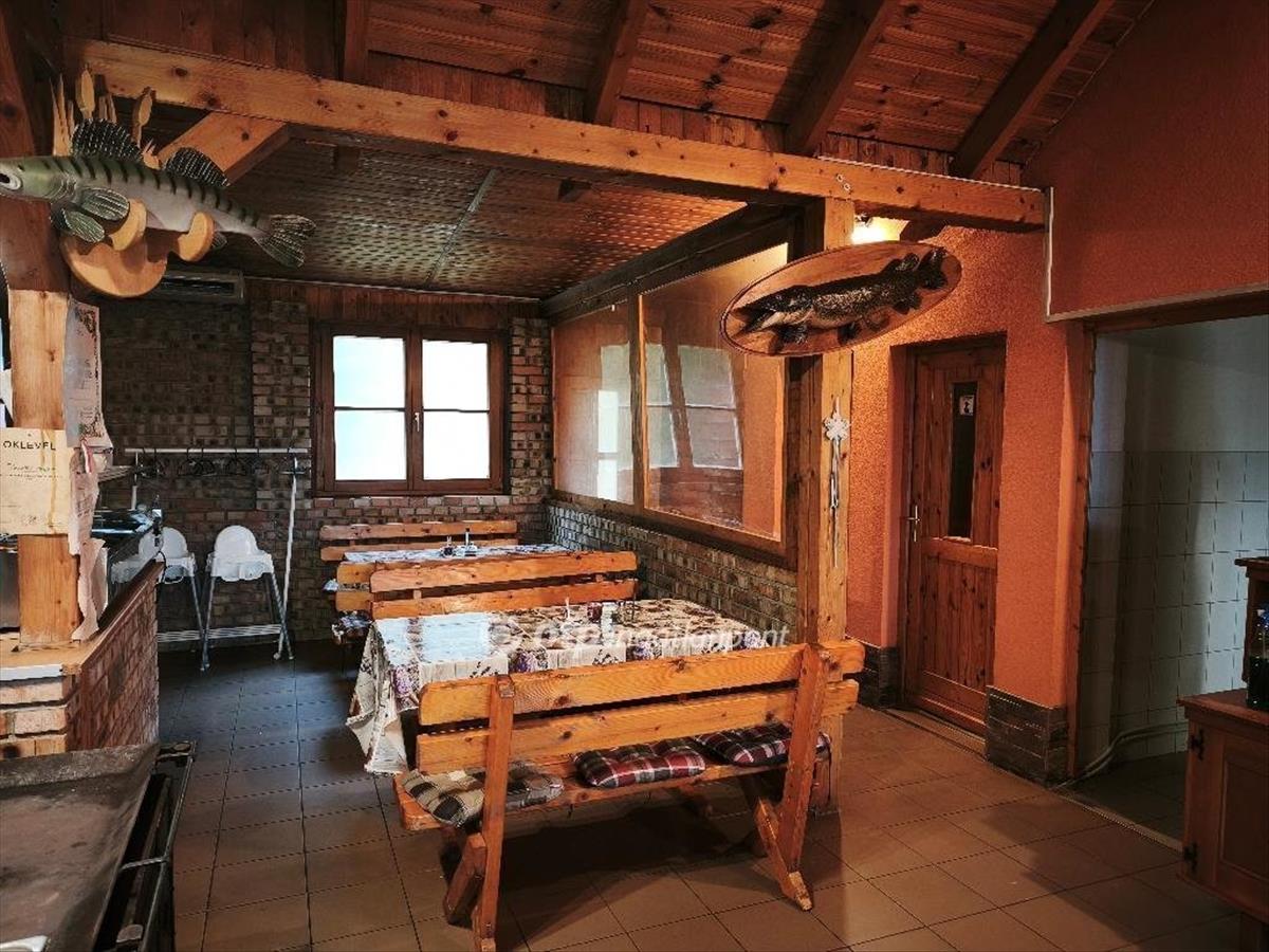 Hangulat: Rusztikus stílusú, téglafalazattal és látszó fagerendákkal kialakított, 68 m2-es vendégtér, amely barátságos, csárda jellegű atmoszférát teremt.