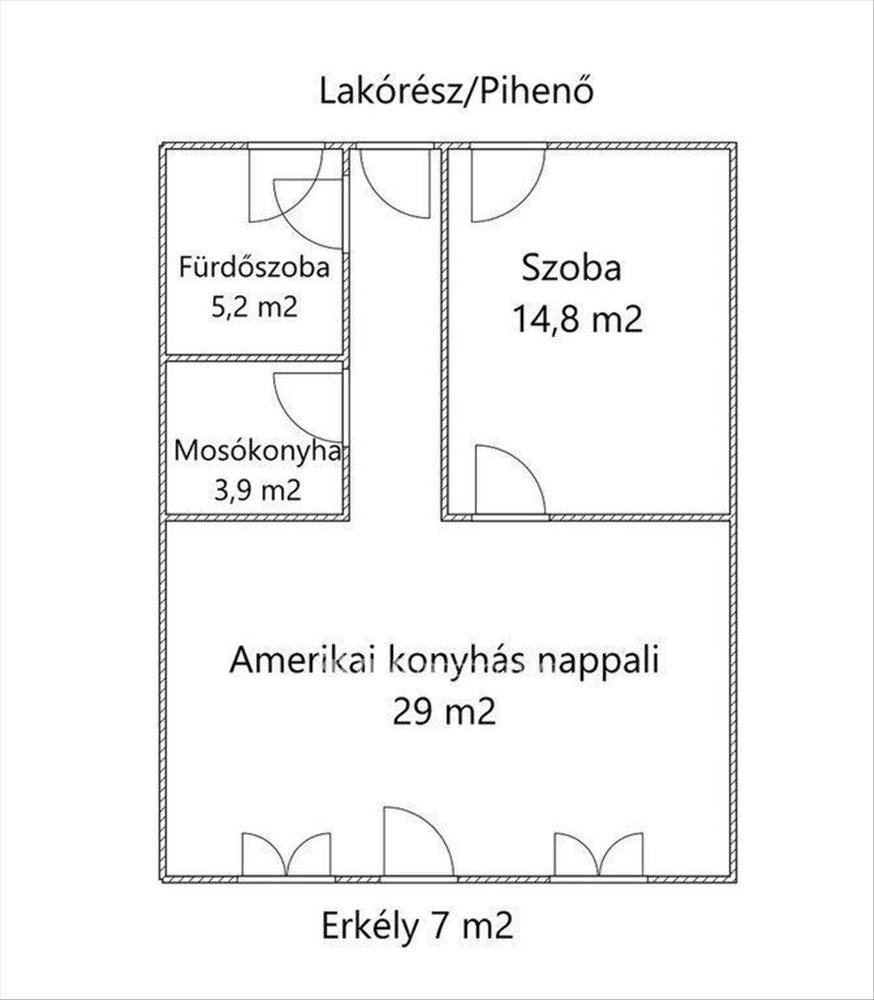Helyiségek: Tágas, amerikai konyhás nappali, hálószoba és fürdőszoba (zuhanyzóval).