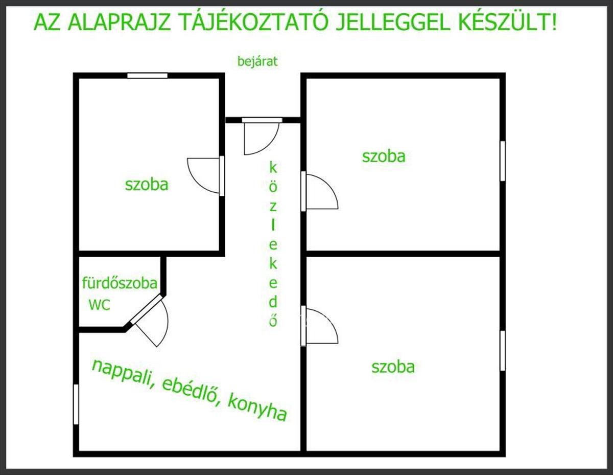 Helyiségek: közlekedő helység, 3szoba, konyha-étkező nappali egyben szinteltolással, fürdőszoba WC.