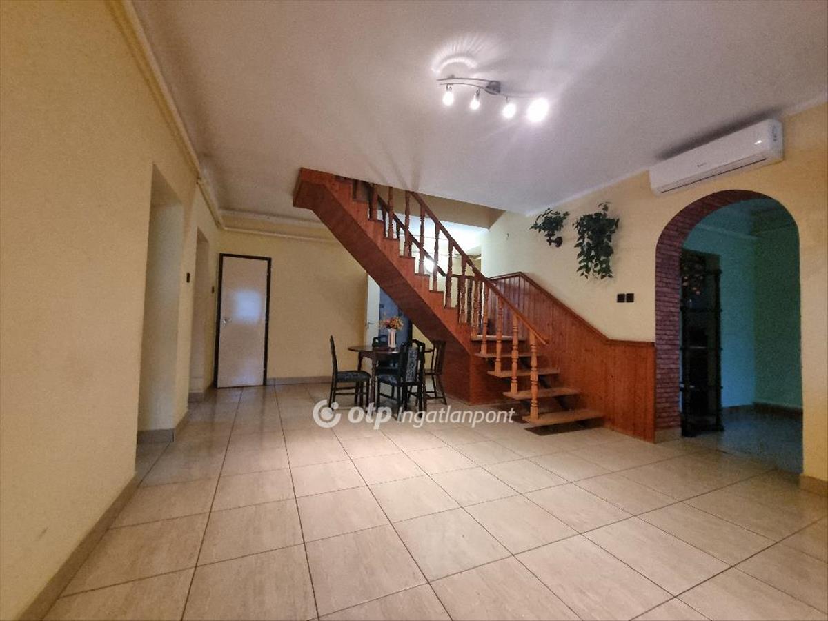 Eladásra kínálok Egyházaskesző csendes, természetközeli részén egy 174, 06 m2-es, remek elrendezésű, igazán otthonos kétszintes 1990-ben épült családi házat, 1 354 m2-es telken. a település Pápától 20 km-re északnyugatra fekszik a Rába-folyó árterében. a Pápa-Csorna vasútvonal Rábahíd megállója 2 km-re van. a ház elhelyezkedése szempontjából meglehetősen jó adottságokkal rendelkezik, tágas, világos terek és nagy udvar tartozik hozzá. Elosztását tekintve áll két tágas, világos napaliból, 3 teljes értékű, külön bejáratú szobából, 1 kívülről erkély kapcsolatos szobából, étkezőből, konyhából, kamrából, két fürdőszobából, WC-ből, közlekedő helyiségekből és fedett teraszból, szépfogóból. a lenti és az emeleti lakóteret egy gyönyörű, lépcső köti össze. a helyiségek burkolata: szobák laminált parketta, a többi helyiség járólap boritású. a ház további részében 2 autóbeállós garázs, kazánház, nyárikonyha, és tároló helységek foglalnak helyet. a nyílászárók jó állapotúak, redőnnyel felszereltek. a ház melegéről egy vegyes tüzelésű kazán gondoskodik, radiátoros hőleadással valamint hűtő-fűtő klíma. a meleg vizet villanybojler biztosítja. Kert része füvesített, az udvar teljesen rendezett, körbekeritett, gyümölcsfákkal, magas-ágyáson művelt veteményes kerttel, fúrt kúttal. a település nem messze található Pápától, Csornától és Győrtől. a környék kiváló közlekedési lehetőségekkel bír, a természetközeli környezet és a falusias nyugalom pedig ideális választás azoknak, akik békésebb életre vágynak, de szeretnének nagyobb városokhoz is közel lenni. Ajánlom mindazon vevők részére, akik egy szép, családias, nyugodt részen kívánnak élni, távol a város zajától. Az OTP Ingatlanpont teljes körű ügyintézéssel áll az eladók és a vevők rendelkezésére. a kínálatunkból választott ingatlan finanszírozásához kedvezményes hitelkonstrukciót kínálunk. Az adásvételi szerződés megkötéséhez igény szerint megbízható ügyvédi közreműködést biztosítunk, és segítséget nyújtunk az adásvételhez kapcsolódó ügyek intézéséhez is. Az ingatlanról készült alaprajz, illetve fényképfelvételek az Otp ingatlanpont szellemi tulajdonát képezik. Ne szalassza el ezt a lehetőséget, vásároljon meg az ingatlant! Hívjon ma!