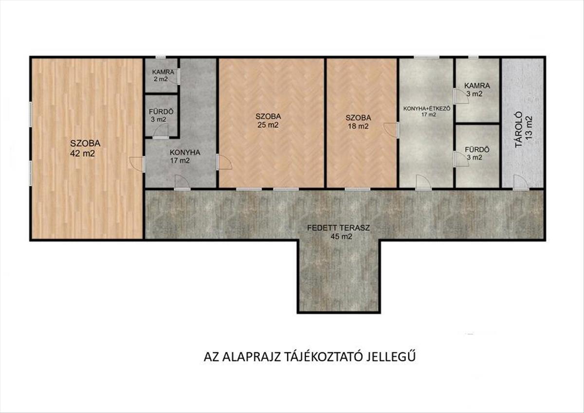 - Laminált parketta a szobákban, járólapos burkolat a többi helyiségben