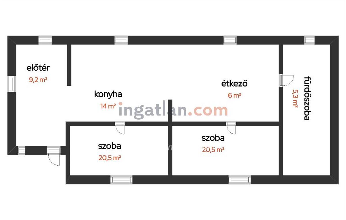 Az ingatlan elosztása: 2 külön nyíló szoba, előszoba, fürdőszoba és wc egyben, konyha, étkező.