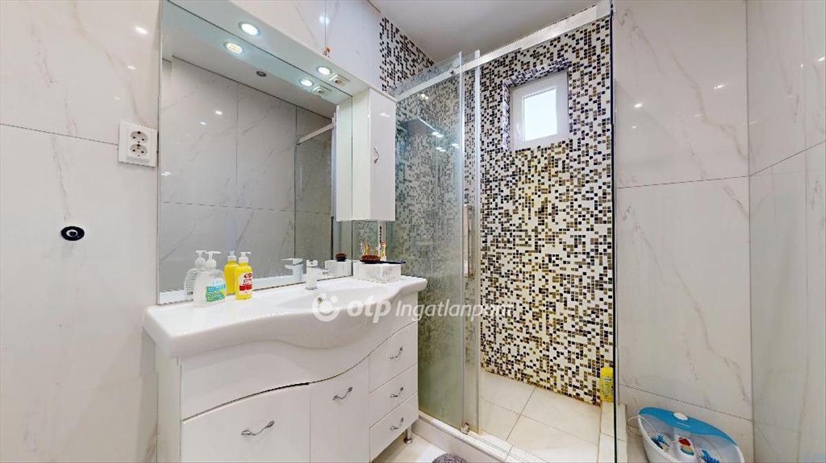 Az alsó és felső szinten is külön fürdőszoba, wc, 3 szoba és nappali, valamint tágas konyha található.
