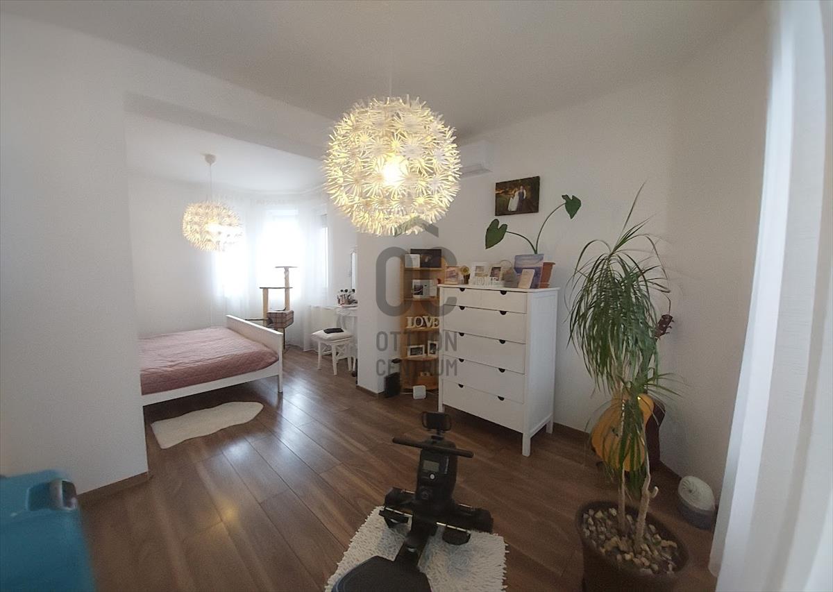 Előtér, háztartási helyiség, tágas, világos amerikai konyhás nappali, egy nagyobb szoba, ami 2 kis szobává alakítható, hálószoba gardróbbal, külön wc, és egy szép, felújított fürdőszoba-wc. a teraszra a nappaliból, és egy szobából is kiléphetünk. a nagy fedett terasz kiváló életteret biztosít a család, és vendégeik számára.