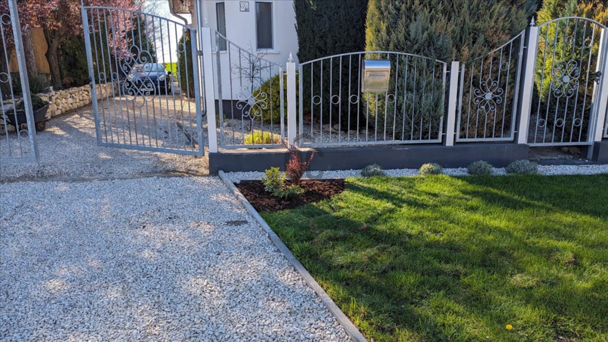 A kert intim, a 2 oldalt zárt fa kerítésnek köszönhetően, csodás növényekkel parkosított. a 7x3 m-es, 1. 2 Mély kerti medence ideális a nyári hőségben való csobbanásra.