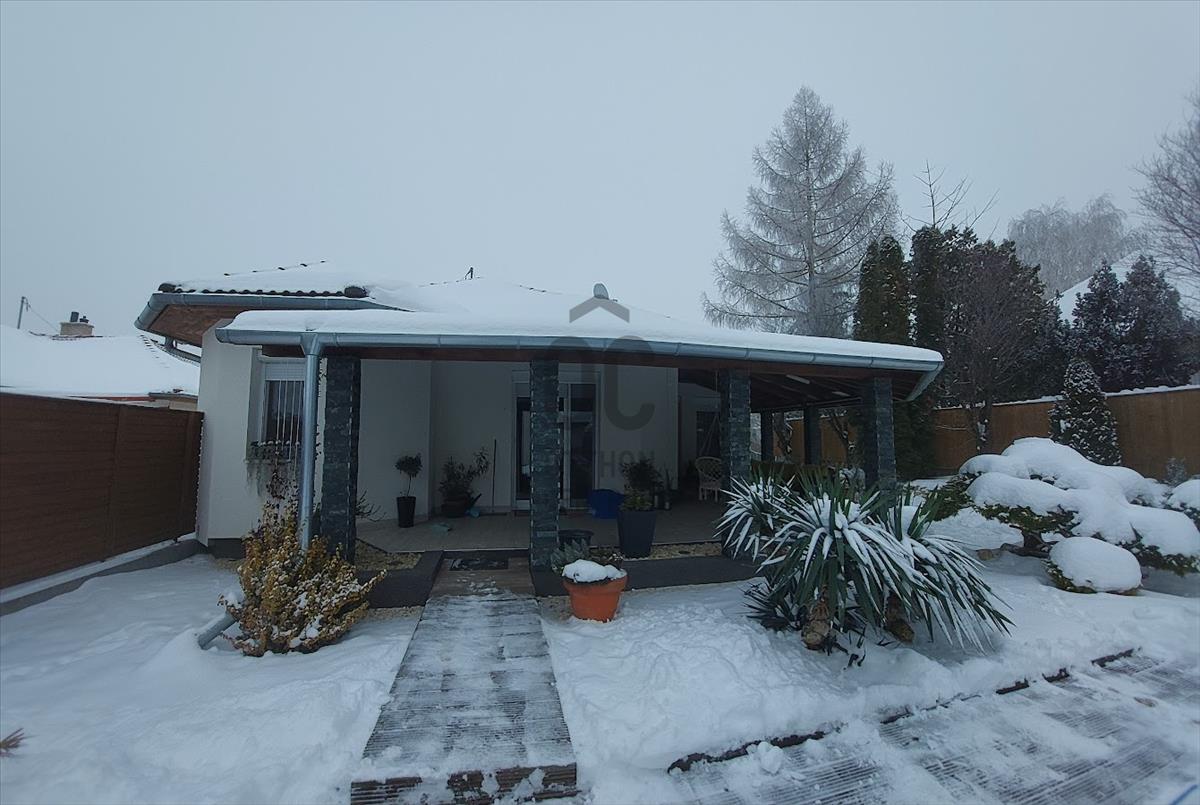 A kiváló állapotú lakóépület különleges, barátságos megjelenését a sokszögű kialakítás, az óriási fedett terasz és a nagyméretű nyílászárók teszik.