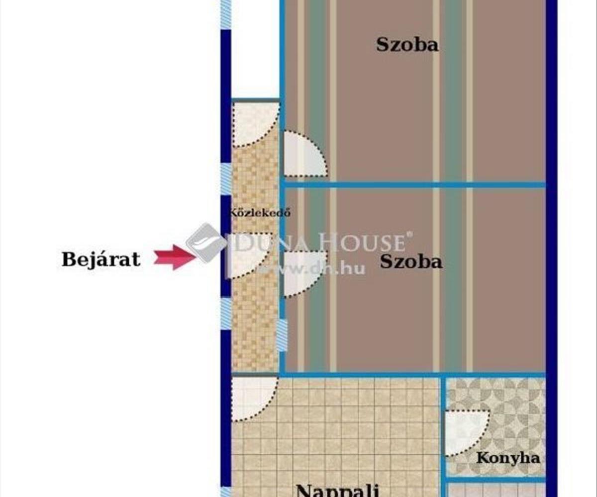 A főbejáraton a közlekedőbe lépünk be, balra van az utcafronti szoba és a tároló, velünk szemben a másik szoba található.