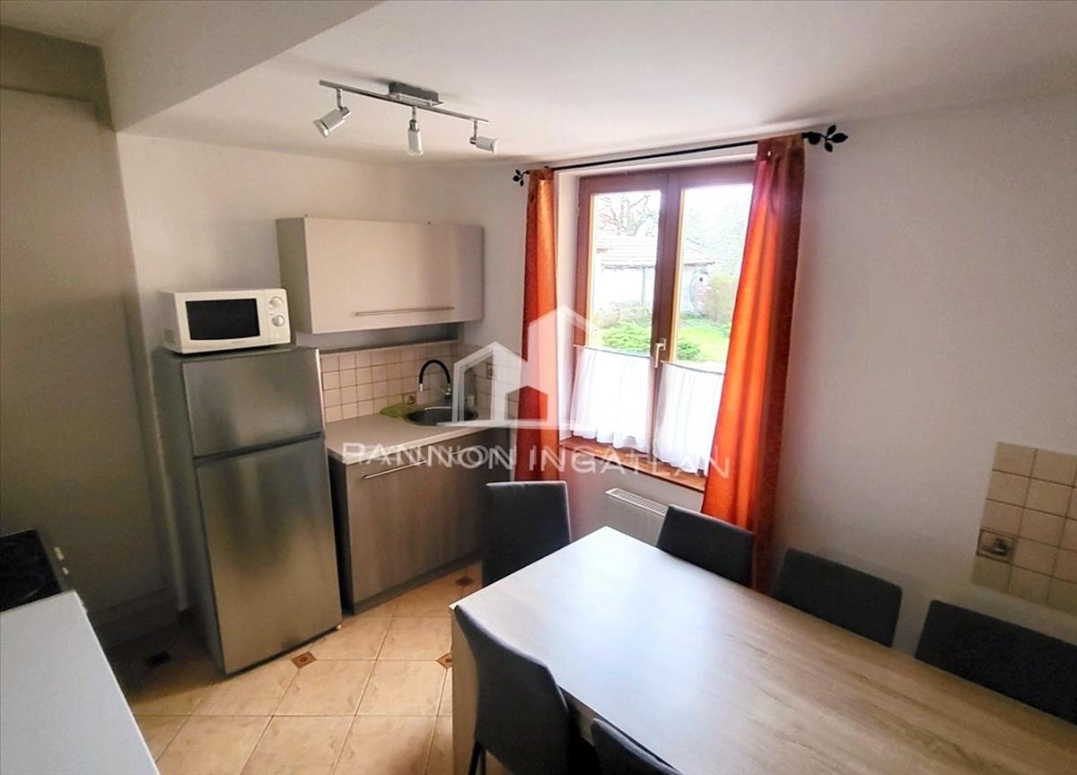 A különálló kis apartmanházban amely 23m², kis konyha, fürdőszoba és 1 szoba található, valamint alatta egy száraz 10m2-es pince! a központi fűtés itt is kialakítva, plusz a szobában egy infrapanel van!