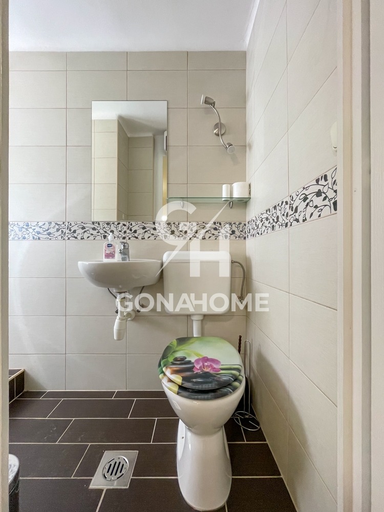 * 1. Lakrész (kb. 69 M²): előtér, konyha, tágas étkező, 2 szoba, fürdőszoba