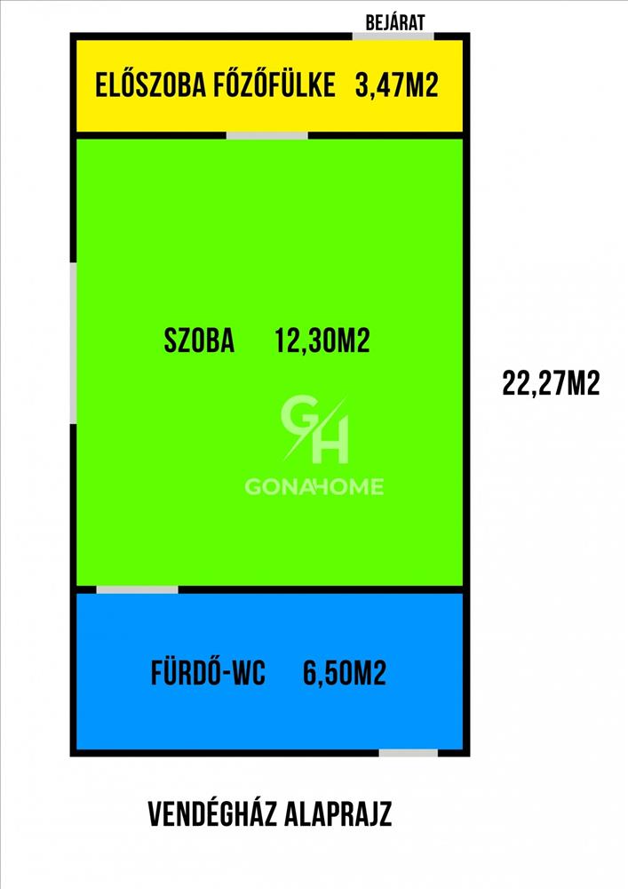 * Kis apartmanház (kb. 22 M²): előtér, főzőfülke, szoba, fürdőszoba