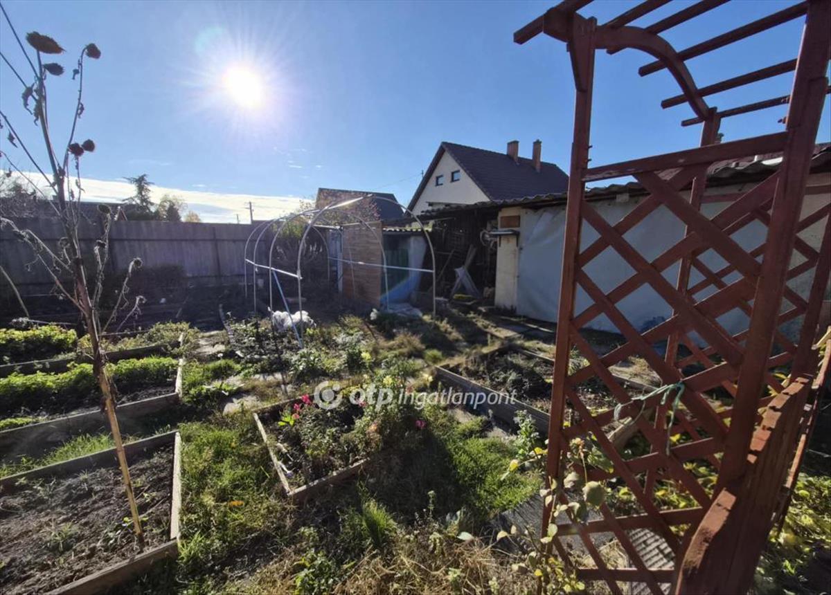 A tágas, 735 m2-es telek gondozott, a kertben kialakított veteményes található, ahol zöldségek termesztésére alkalmas ágyások lettek kialakítva.