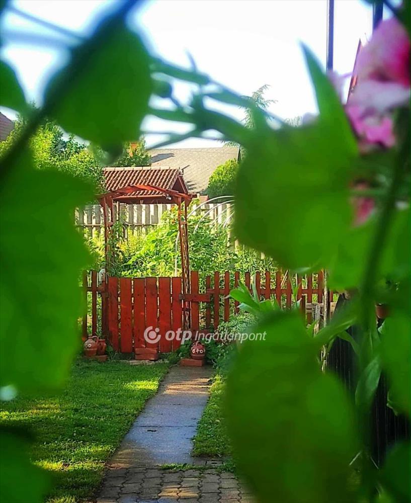 A tágas, 735 m2-es telek gondozott, a kertben kialakított veteményes található, ahol zöldségek termesztésére alkalmas ágyások lettek kialakítva.