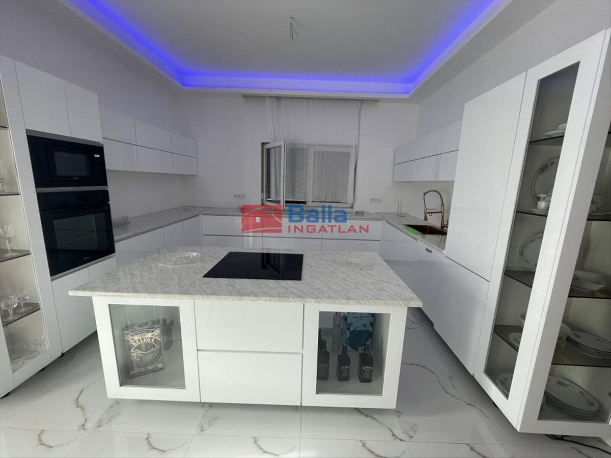 A házban modern, magasfényű, beépített konyha kapott helyet, a nagy ablakoknak köszönhetően minden helyiség fényárban úszik.