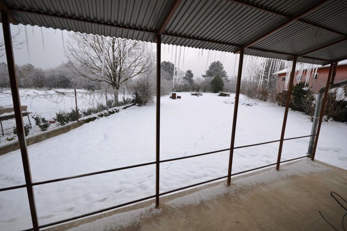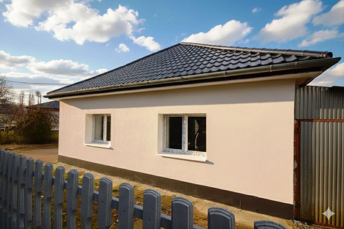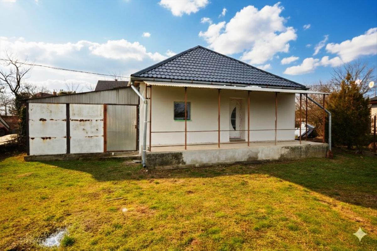 A házba a fedett teraszon keresztül jutunk a nappali és konyha együttesébe, innen nyílik a két hálószoba és a fürdőszoba. a ház oldalához egy nagy, 33 nm -es lemezgarázs csatlakozik. Az épület szigetelése megtörtént, a színezés és a terasz burkolása a jó idő beköszöntével készül el és része a vételárnak!
