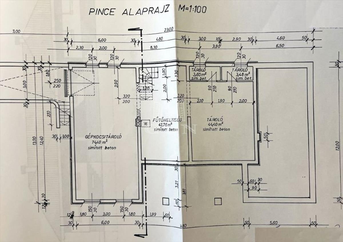 A pinceszint területe: 167 m².