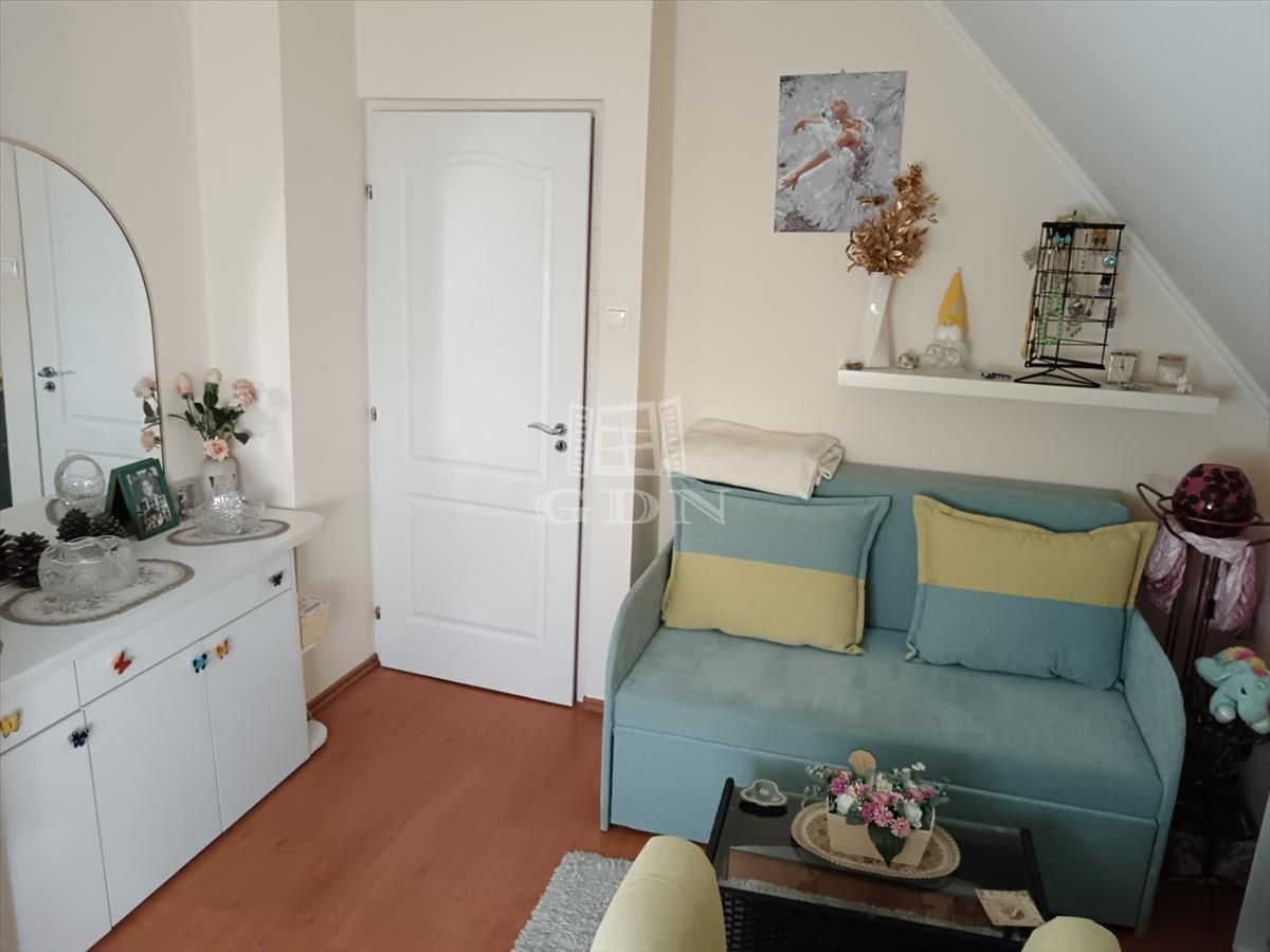 Az emeleten két tágas hálószoba, egy sarokkádas fürdőszoba, valamint egy világos nappali fogad.