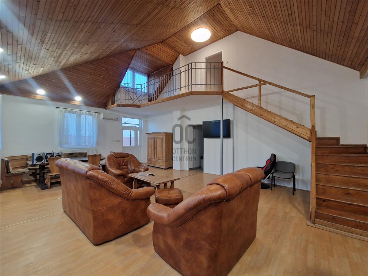 A ház központi része az impozáns nappali ami már egy terem méretű, rendkívül különleges hangulatú a hatalmas belmagasságnak köszönhetőn.