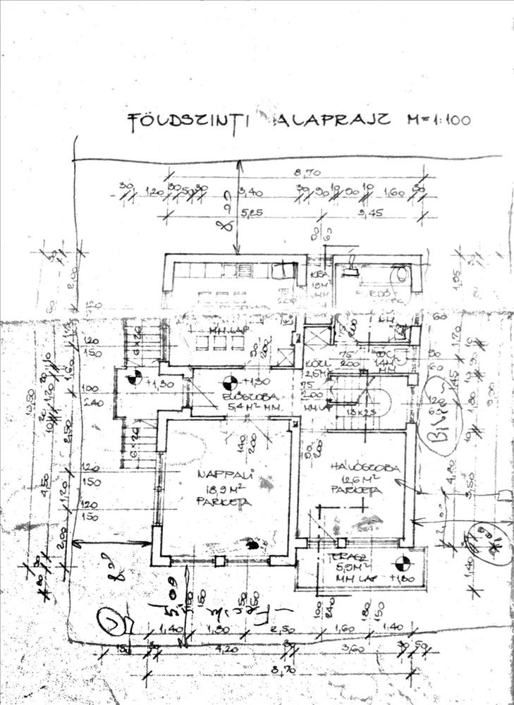 •Első szint: 90 nm alapterület, felújítandó állapotban. Két szoba, konyha-étkező, sarokkádas fürdőszoba, wc található