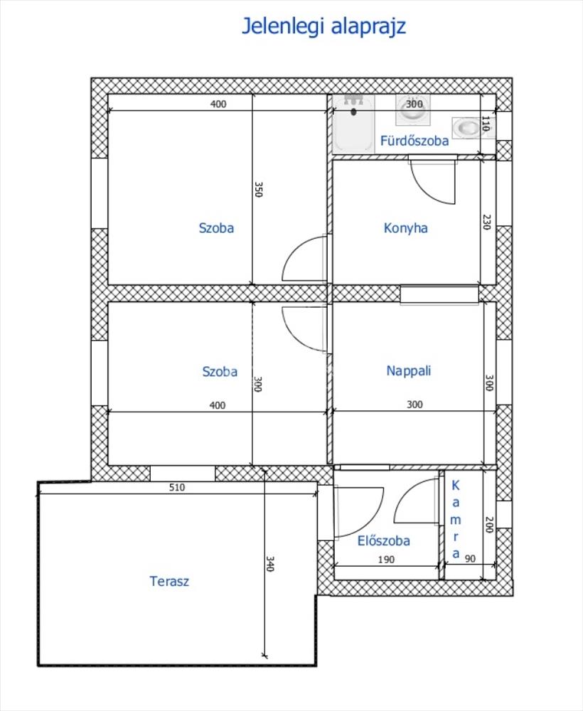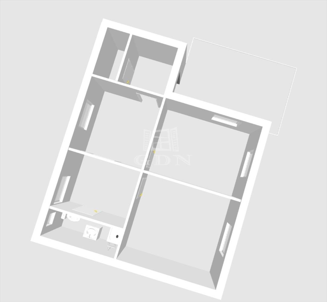 A ház elrendezése 2 szoba, konyha, étkező, fürdőszoba, előszoba.