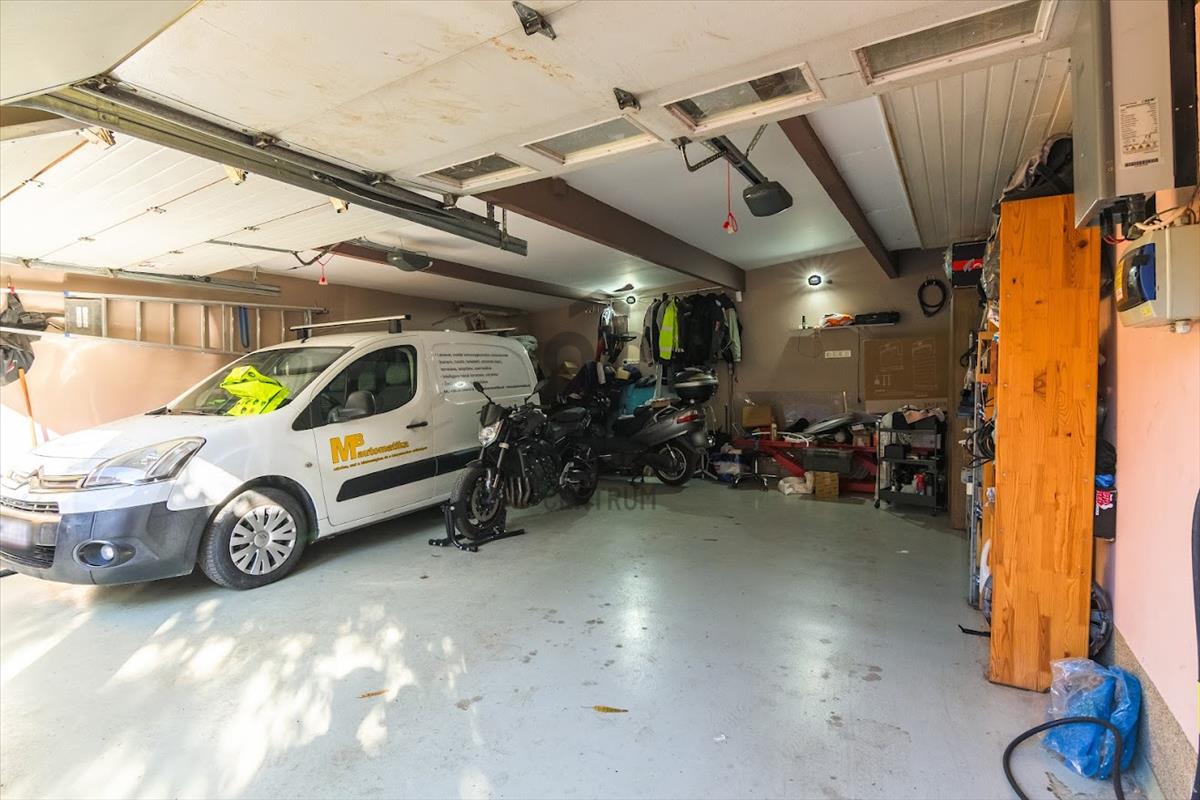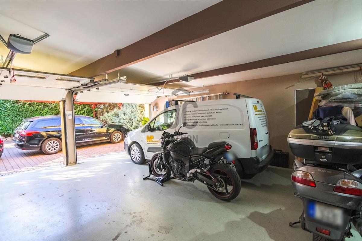 Az ingatlanhoz tartozik egy két autó számára kialakított garázs, amely elektromos autó töltésére is alkalmas, így a modern igényeknek is megfelel.