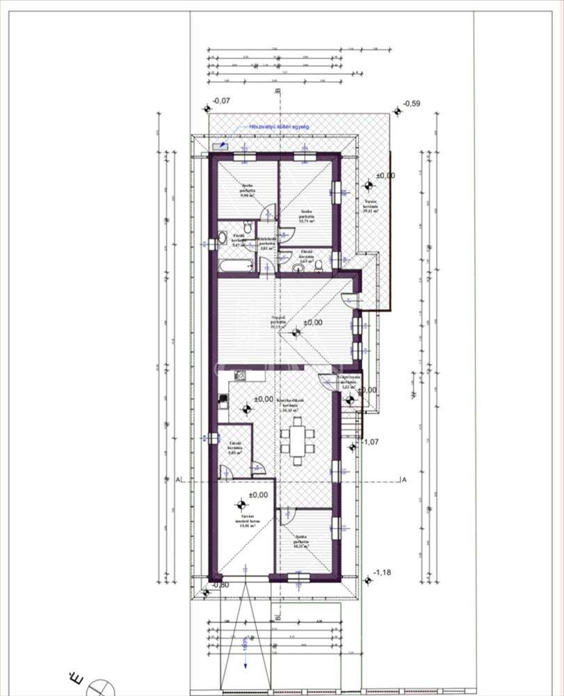 - Nappali + étkező + konyha, közvetlen kapcsolat a 39 m²-es terasszal