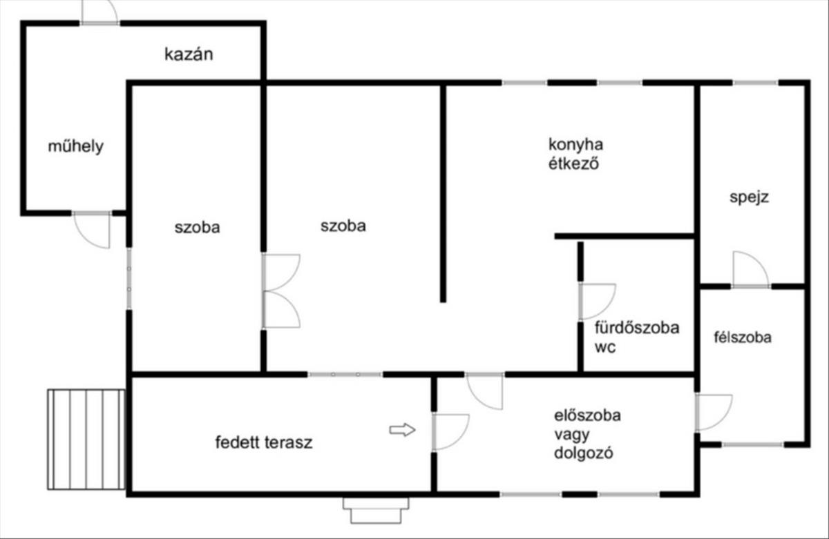 A ház 73 nm , 2 és fél szobából áll. Téglából épült, beton födémmel. a tetőtér 30m²-en beépíthető, ide jelenleg külső lépcső vezet fel.