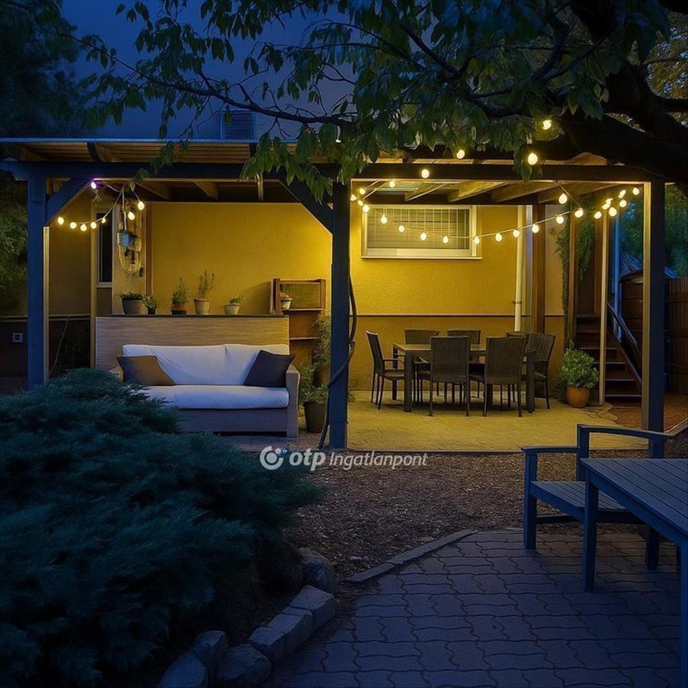A kertben homokszűrős medence és gyerekek számára kialakított játékbirodalom is megtalálható. Az öntözést vezetékes víz és ciszterna szivattyúval egyaránt biztosítja, ami gazdaságossá és fenntarthatóvá teszi a kert gondozását.