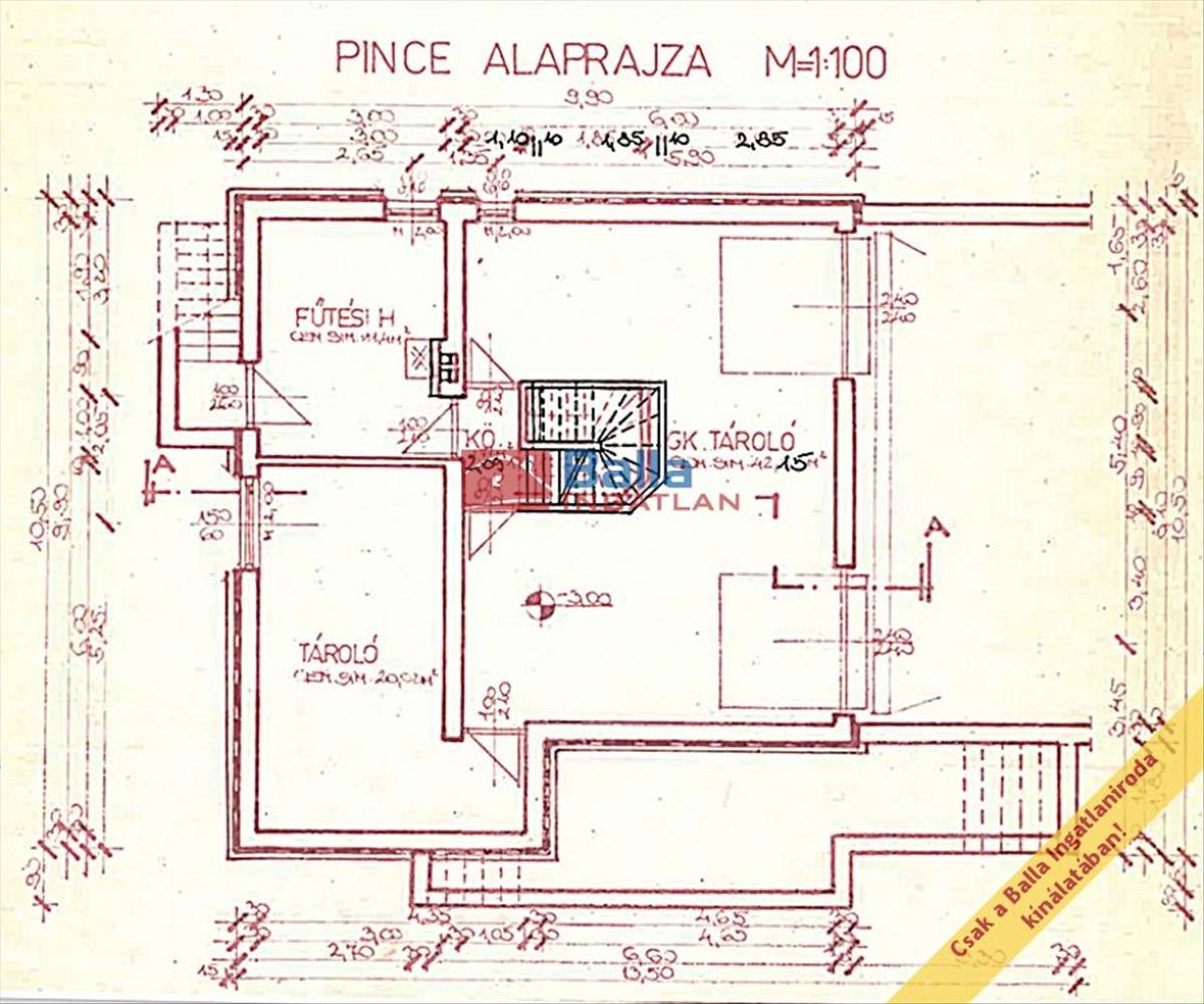 A pince szint nettó alapterülete összesen kb. 73, 5 M².