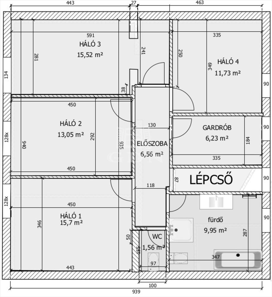 • 4 külön nyíló szoba