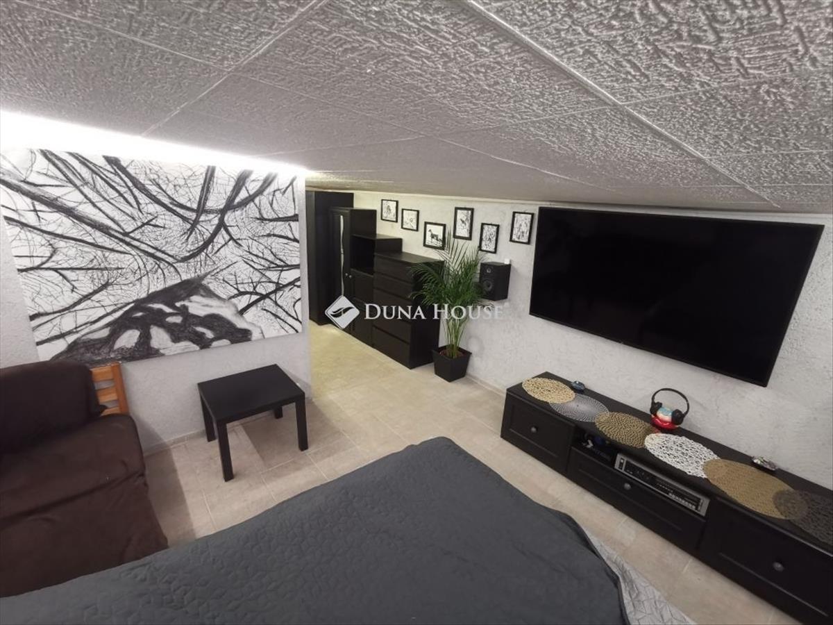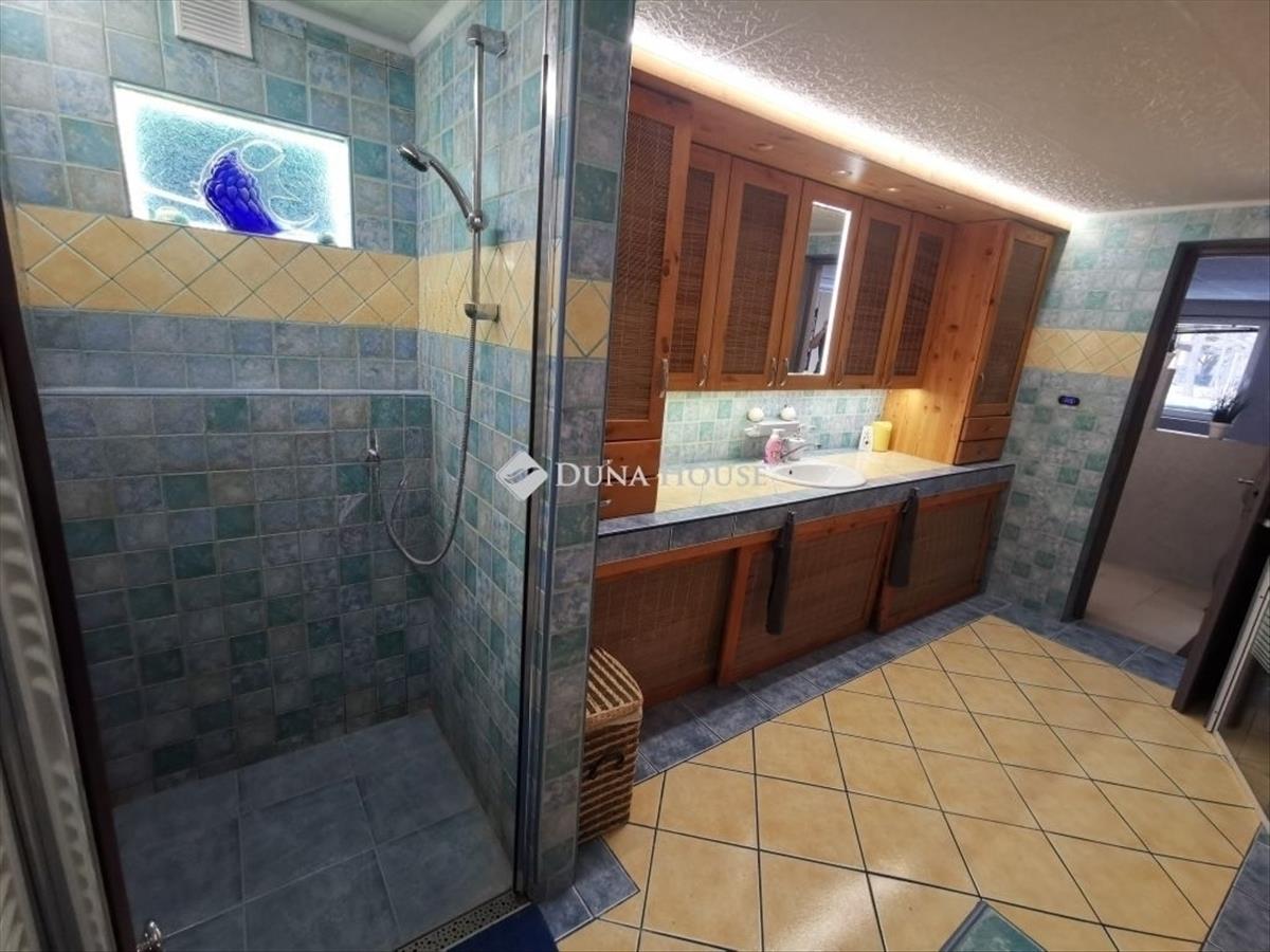 Gyönyörű környezetben eladó családi ház a fák ölelésében! Keresett részen Érd Parkváros fa neves utcák egyikében található. Érd Parkváros Hajós játszótér környékén eladó egy 2010-ben épült családi ház. Az ingatlan építkezése abbamaradt, így ízlés és igénye alapján fejezheti be. Az ingatlan nem került befejezésre a tervek szerint, de jelen állapotában is lakható és költözhető. Tervek szerint ez a ház egy 2 szintes családi ház, melynek csak a garázs az afeletti része került megépítésre. a következő szint nem került megépítésre, ahol : 2 nagy szoba, amerikai konyhás nappali és egy fürdőszoba lett tervezve. Terveket és látványterveket személyesen betudjuk mutatni. Műszaki adatok: - 2010-ben épült 30-as ytong falazó anyagból, válaszfalak pedig 10 cm vastag ytongból- 5 cm homlokzati szigetelés- 2 rétegű műanyag nyílászárók - Fűtés jelenleg egy vegyes tüzelésű kazán, amely működteti a megépült szinten a falfűtést és padlófűtést. Ezt kilehet váltani hőszivattyús kialakításúra erre elővan készítve. - Tető fedése lemezfedést kapott, ez által a felfelé építés során könnyebben bontható, kivitelezhető. Elosztását tekintve: - 2 állásos garázs, mely 48 m2, felette ugyan ekkora terasz- Ház oldalán lépcsőn keresztül felérve közelíthetjük meg az első szintet, mely az eredeti tervek alapján egy szuterén szint, itt található a mostani lakótér. Főbejáraton belépve jó méretű előszoba, beépített gardrób, tágas nappali teraszkapcsolattal, 2 szoba, 1 konyha, fürdőszoba, tároló és egy kazánház található. Ezen a szinten 2, 2 méter a belmagasság, nettó 110 m2-es. - Ennek a szintnek a tetőtere beépítésre került, ahol kialakításra került egy teljesen külön bejáratú fiatalos, kuckós lakrész, mely tökéletes a gyerekek első saját otthonaként vagy vendég helyiségnek, dolgozónak, irodának stb. Nettó 42 m2. Helyiségei: Nappali, 1 szoba, konyha, fürdőszoba. a telek lejtős kialakítású cserébe kellemes kilátással, telek végében ősfák és erdő található. Összközműves, összesen 817 m2-es. Kert hátuljában hangulatos fedett szaletli lett kiépítve, ahol kedvére sütögethet, pihenhet, élvezheti a csendet és a természet közelségét. Szaletlibe kiépítésre került egy sütögető és egy kemence is. Utca rendezett, szép házakkal körbevéve. Mivel a ház még befejezésre vár, ezért még a használatbavételi engedélyét nem kapta meg. Továbbépítéssel tudja folytatni kedvére az építkezést. Készpénzes vásárlók megkeresését várjuk. Iskola, óvoda, bevásárlási lehetőségek perceken belül elérhetőek. További információkért hívjon bizalommal. FIX 3% lakáshitelre megvehető
