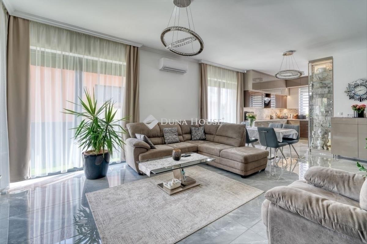 -Két inverteres klíma, gépesített konyha (sütő, főzőlap, páraelszívó, mosogatógép, hűtő), előszoba- és gardróbszekrény, elektromos garázs- és nagykapu, kamerás kaputelefon és riasztórendszer, minőségi beltéri ajtók és burkolatok.