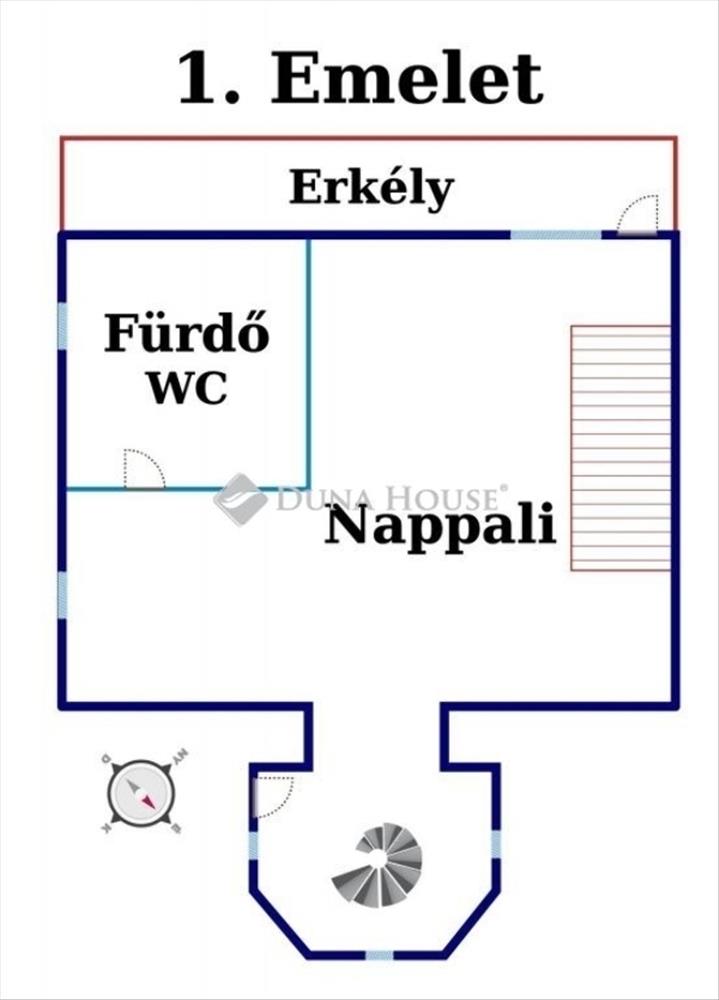 2. emelet: közlekedő, fürdő wc-vel és kettő darab szoba.