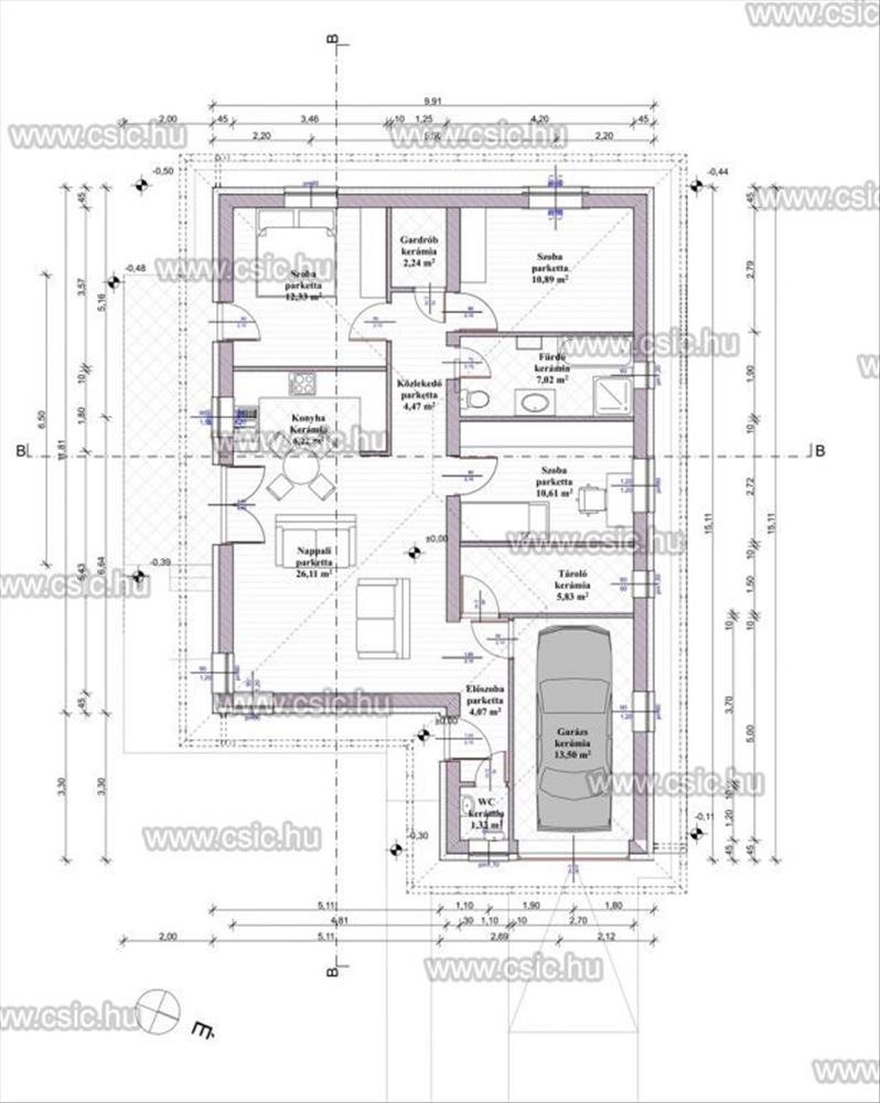 - Nettó 105 m2-es, 3 szoba + nappali, de a beltéri helyiségek elrendezése alakítható