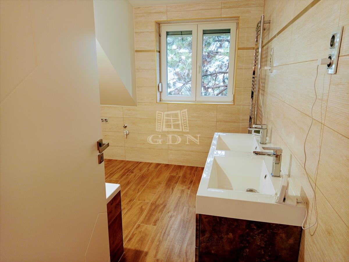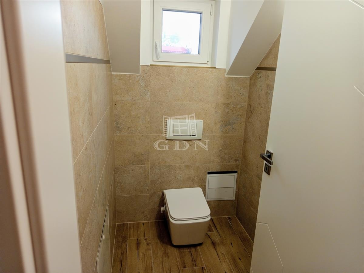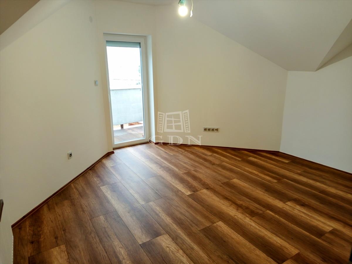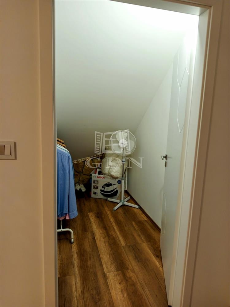 A tetőtérbe a led égő csíkkal megvilágított lépcsőn jutunk fel. Ezen a szinten három, 20, 0 nm, 14, 95 nm, 13, 5 nm szobát találunk, valamint egy 15, 2 nm- es helységet amelyből a felső helyiségek nyílnak. Tea konyha 13, 2 nm, gardrób helyiség 2, 42 nm, kádas fürdő + wc 17, 2 nm valamint egy önálló wc 1, 38 nm találunk. a ház bejárata előtt egy 31, 0 nm-es fedett terasz van ami alatt egy tároló helyiség került kialakításra.