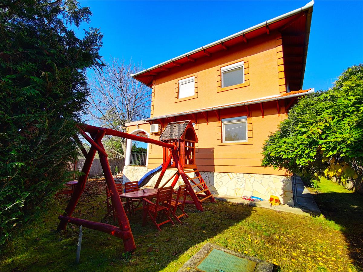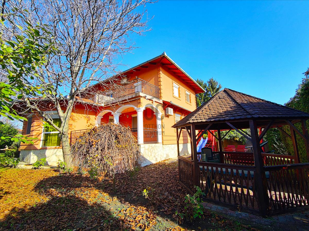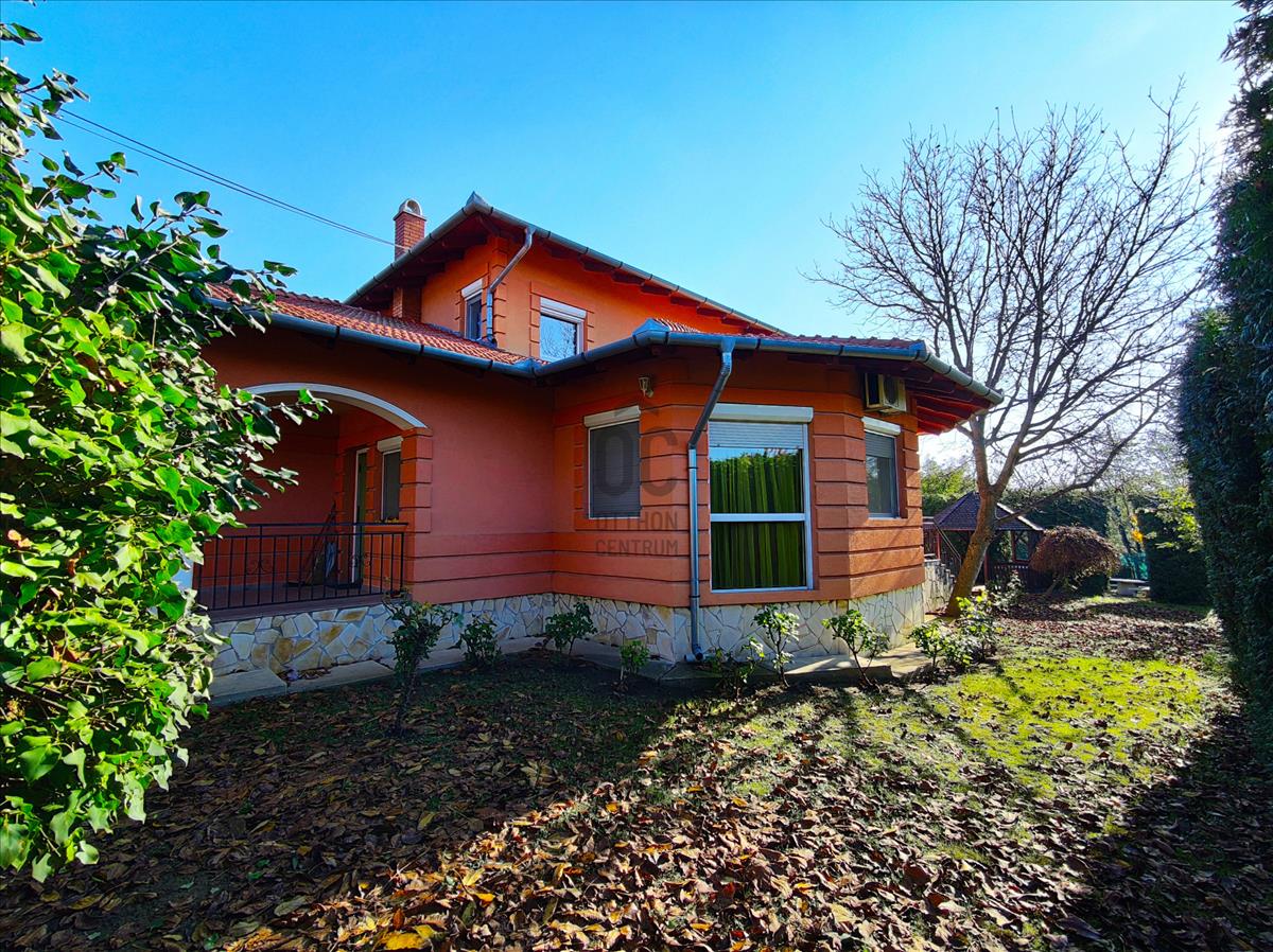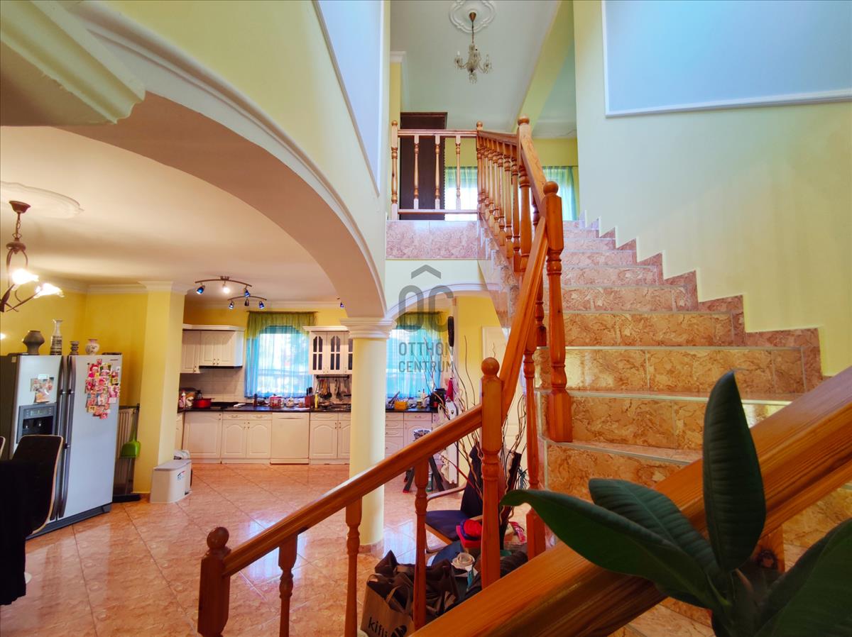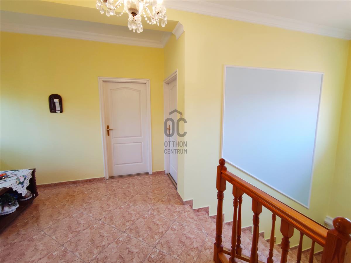 Az ingatlan 2005-ben épült két szintes, duplakomfortos, tégla épület. Az alsó szinten található a konyha étkezővel, kamra, wc, szoba és egy tágas nappali, amely egész nap világos köszönhetően nagy méretű hőszigetelt ablakainak. Ezeken az ablakokon kitekintve a kertet láthatjuk, ahol minden megtalálható, hogy a család otthon is kikapcsolódhasson. Találunk itt 2 teraszt, kerti sütögetőt, filagóriát valamint a gyerekek számára kialakított játszóteret is.