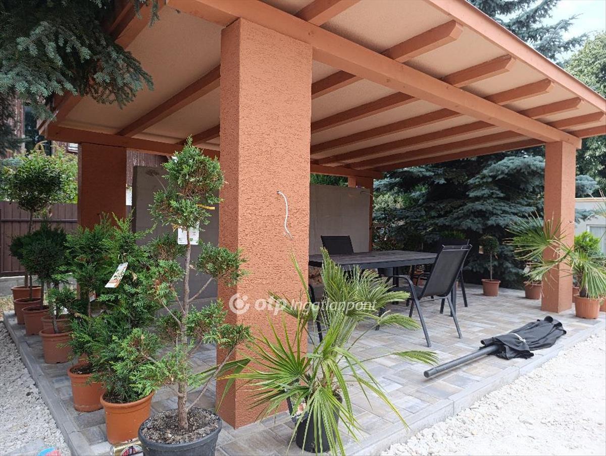A hatalmas, 1091 nm-es telek parkosítva, árnyékot adó fákkal beültetve, gyepszőnyeggel ellátva, hangulatvilágítással kerül birtokbaadásra! a ház egyediségét tükrözi a kertben külön álló épületként megtalálható nyári konyha, minőségi bútorral felszerelve, mellette egy csobogós vízfallal ellátott szaletli, a kert végében pedig a teljesség igénye miatt egy vendégház található. Ezeken felül a telken több autó részére térkövezett beálló, 2 autónak fedett parkolóhely is kialakításra került.