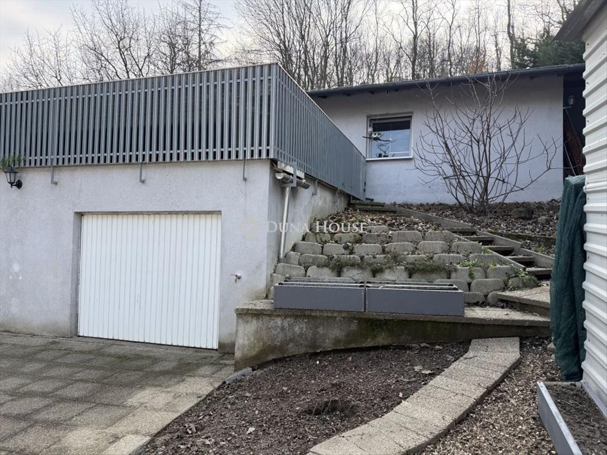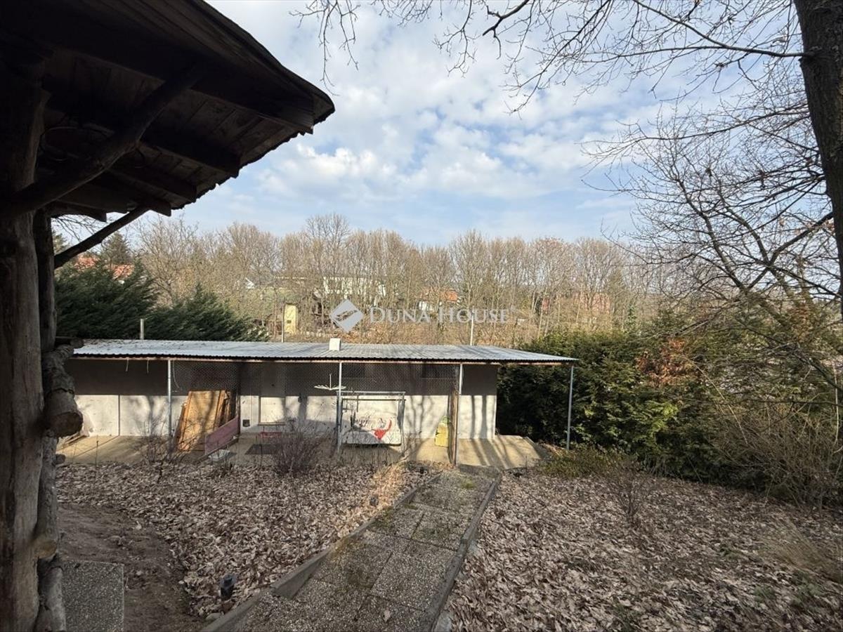 A telek lejtős kialakítású cserébe kellemes kilátással, telek végében ősfák és erdő található. Összközműves, összesen 817 m2-es.