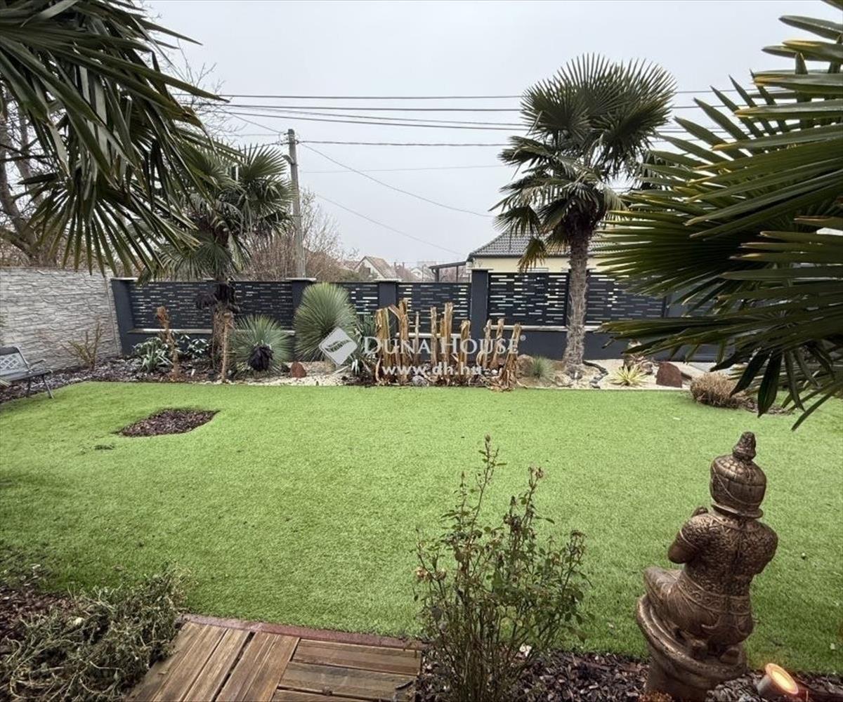 A telek szépen gondozott, összközműves, 548 m2, hangulatos pálmákkal és növényzettel, műfűvel. Található még egy tároló is, ahol biciklit, fűnyírót lehet tárolni. Kerítés körben végig egységes betonpanel, utcafrontos épített kerítés elektromos kapuval. Ház oldalában hangulatos nagy méretű fedett terasz, épület mögött pedig szabadidő, baráti összejövetelekre kialakított rész. Iskola, óvoda, bevásárlási lehetőségek, tömegközlekedés perceken belül elérhetőek gyalog és kocsival egyaránt.