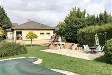 játszótér, kerti grillező, fúrt kút, automata locsolórendszer és egy 30 m²-es vízforgatós medence garantálják a gondtalan nyári pillanatokat.