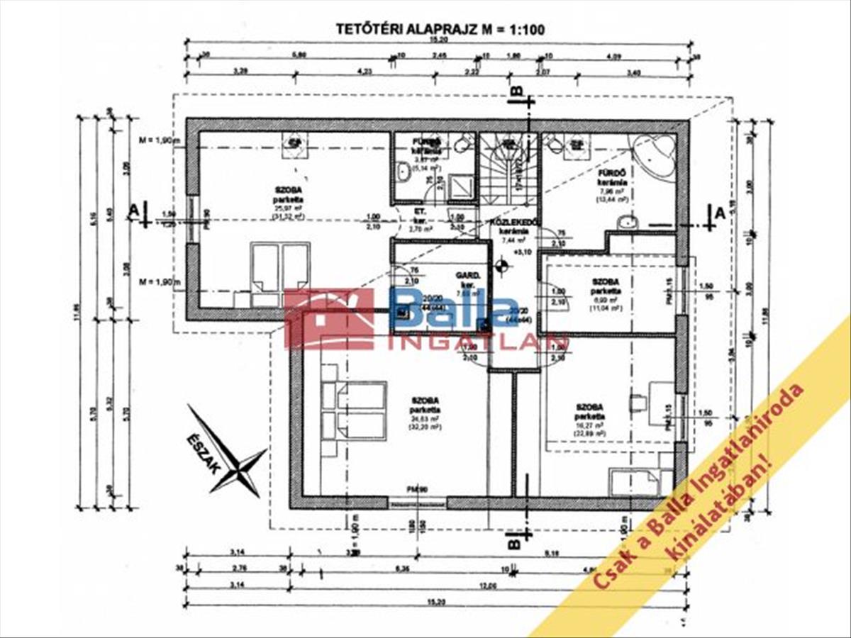 Fürdőszobák száma: 3 db (1 földszint + 2 tetőtér)