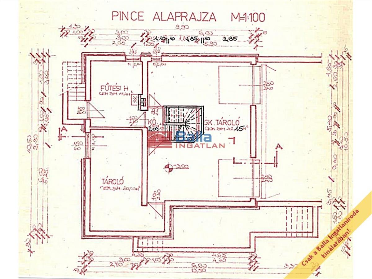 A pince szint nettó alapterülete összesen kb. 73, 5 M².
