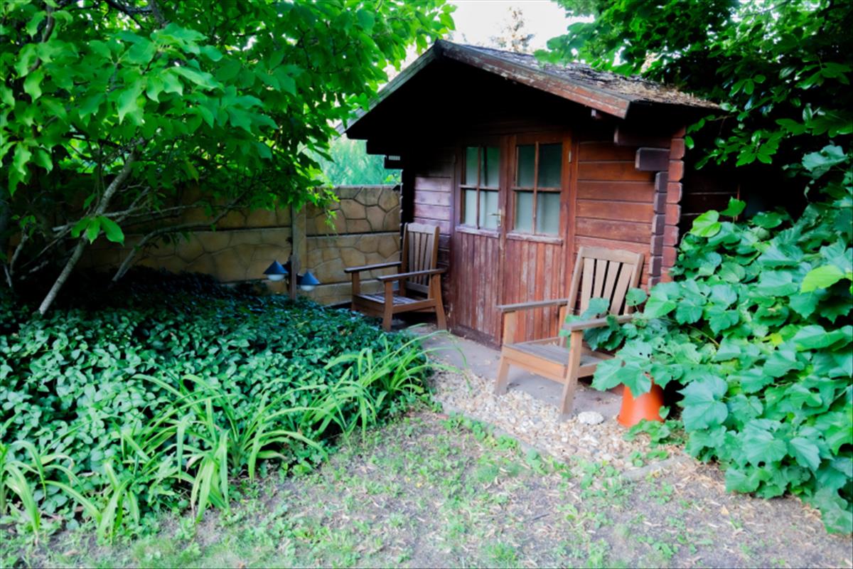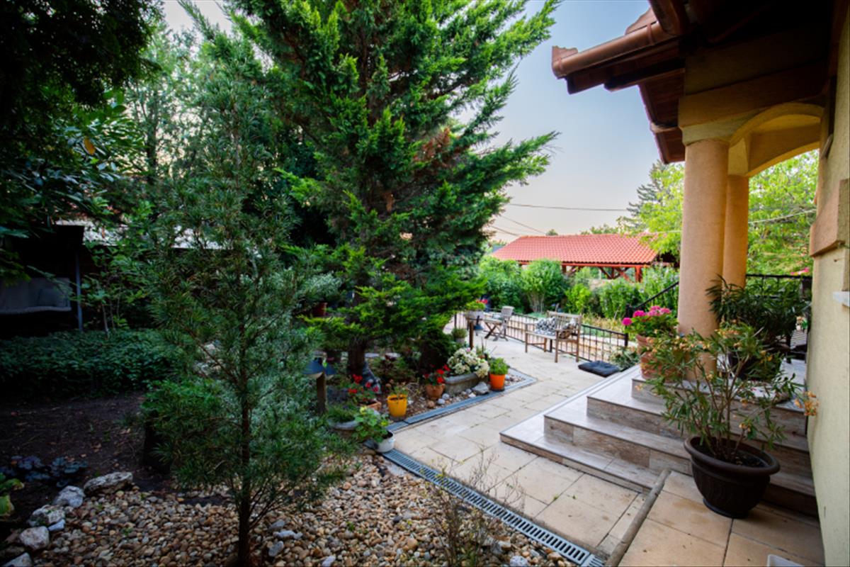 - közel 1000 m² parkosított, dísznövényekkel beültetett telek