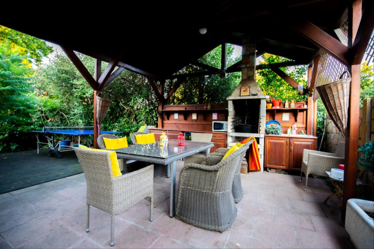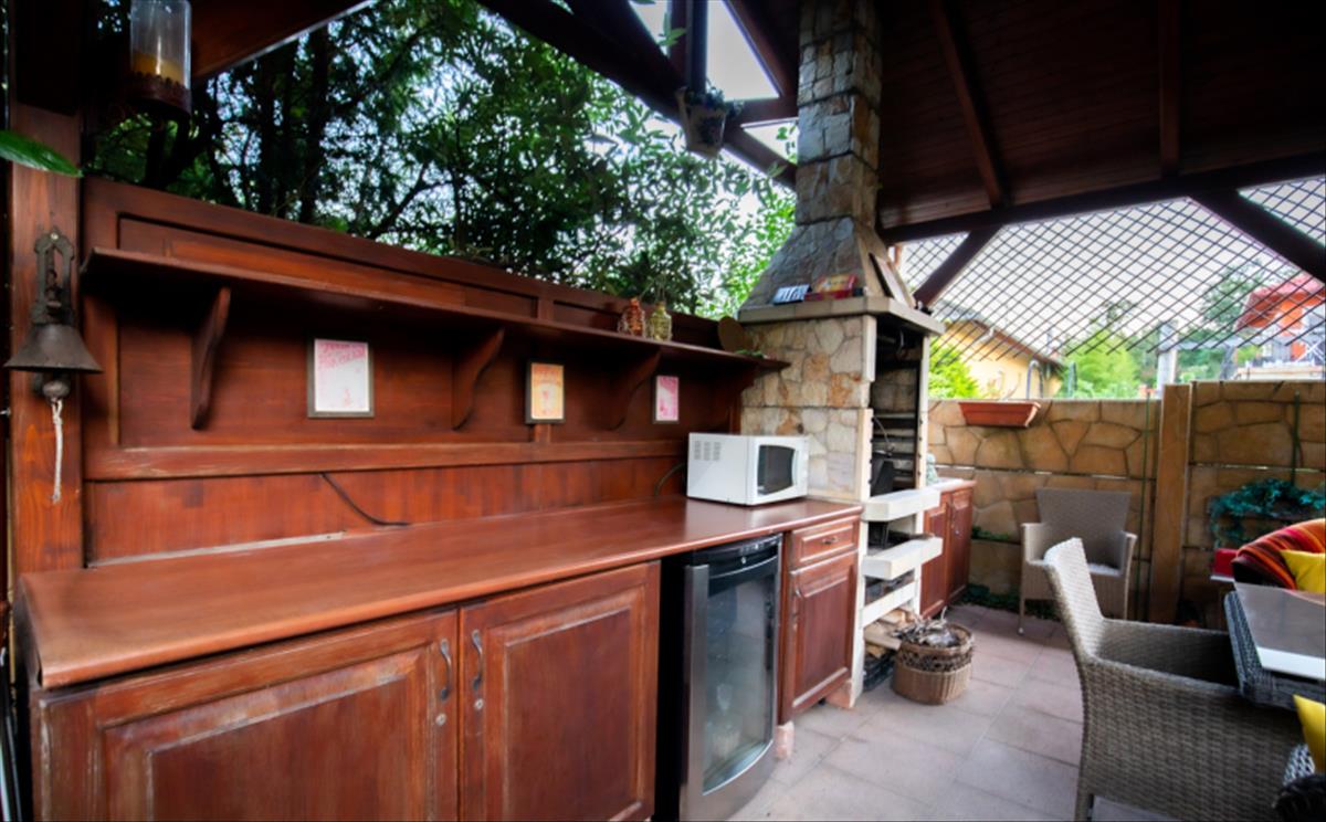 - egyedi épített sütögető és konyharész