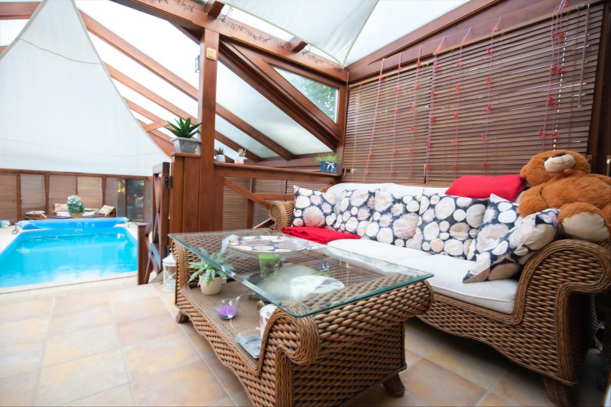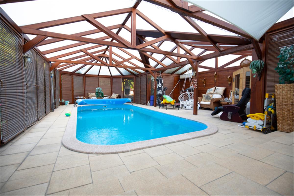 Az ingatlan egyik legnagyobb értéke a 150 m²-es, borovi fenyő szerkezetű, polikarbonát fedésű télikert és wellness részleg, amely egész évben használható.