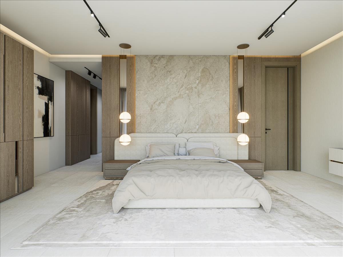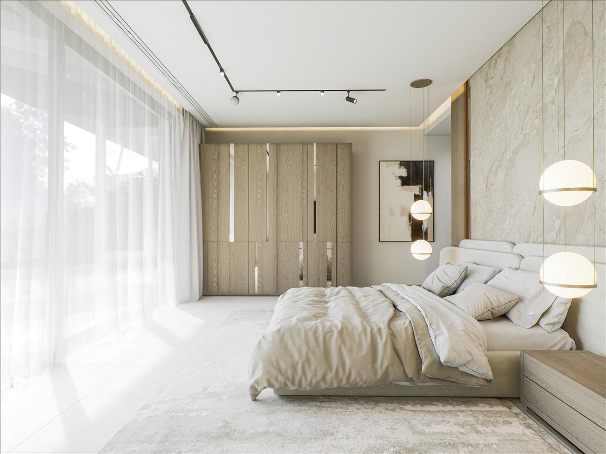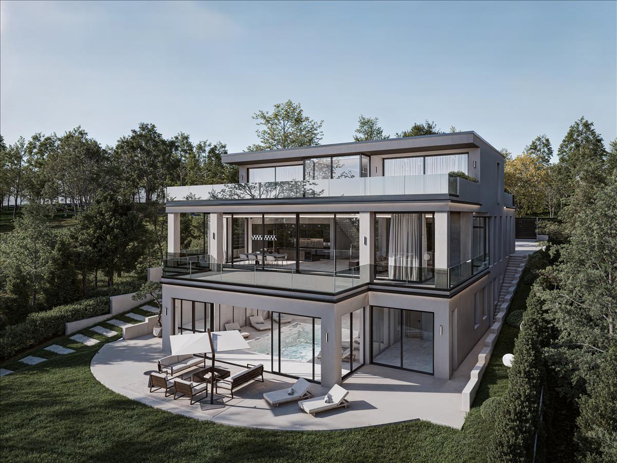 Az emeleten két exkluzív master lakosztály vár saját gardróbbal és terasszal, míg az alsó szinten egy 136 m²-es medencetér, wellness, továbbá moziterem, borszoba és további kertkapcsolatos lakosztályok teszik a luxus oázisává ezt a modern villát.