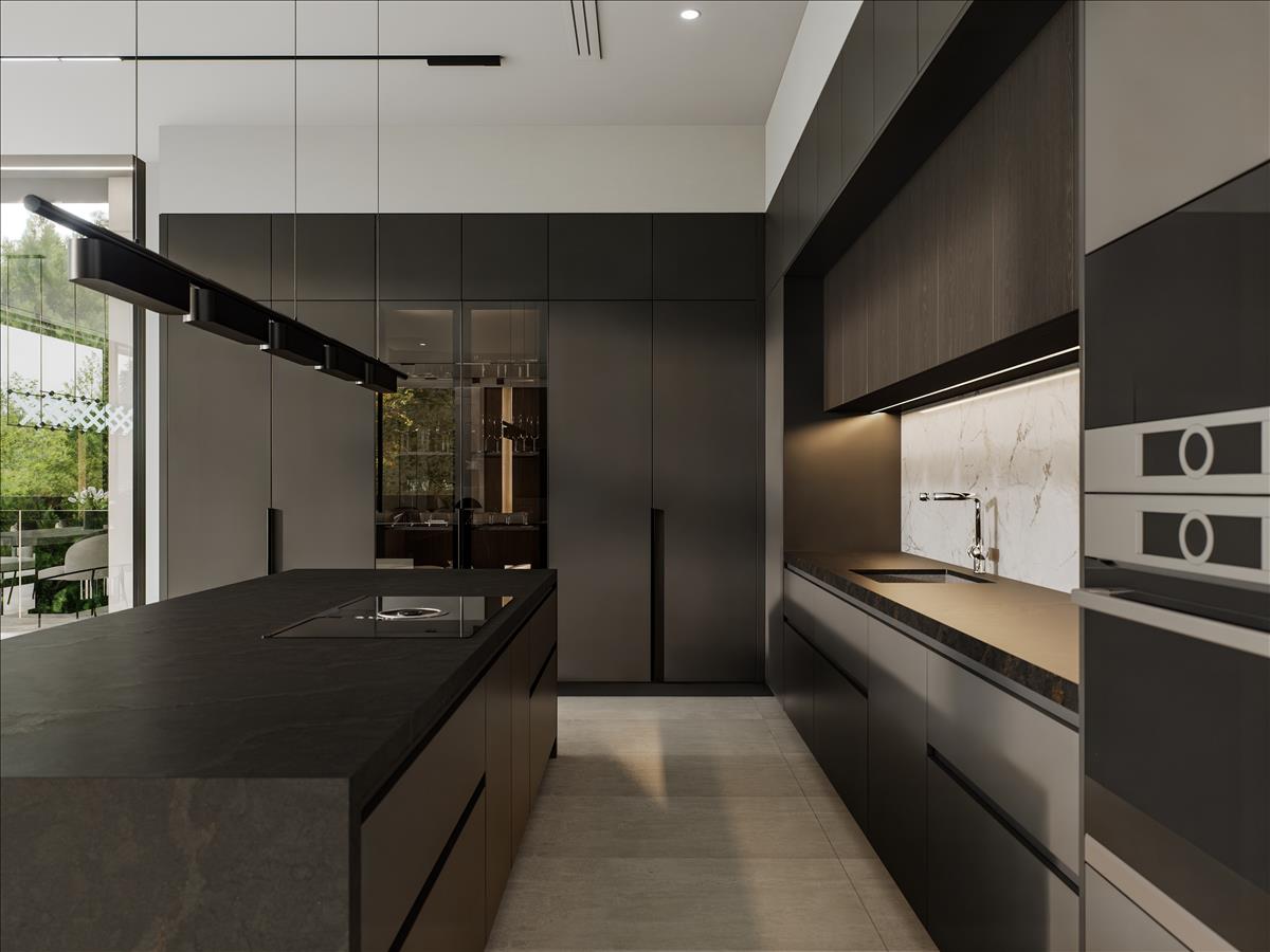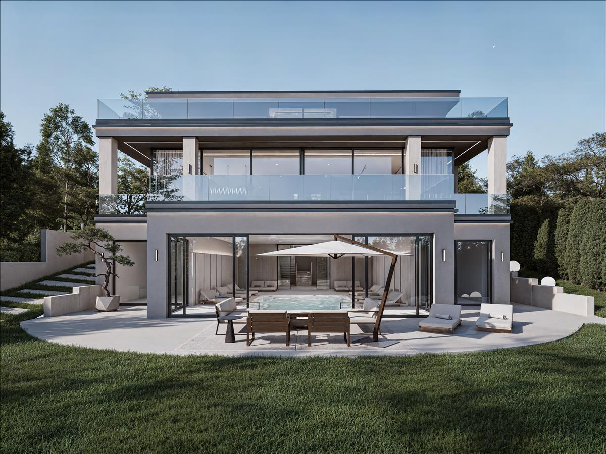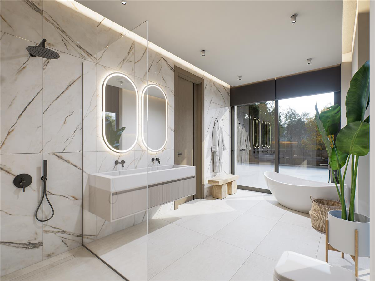Az emeleten két exkluzív master lakosztály vár saját gardróbbal és terasszal, míg az alsó szinten egy 136 m²-es medencetér, wellness, továbbá moziterem, borszoba és további kertkapcsolatos lakosztályok teszik a luxus oázisává ezt a modern villát.