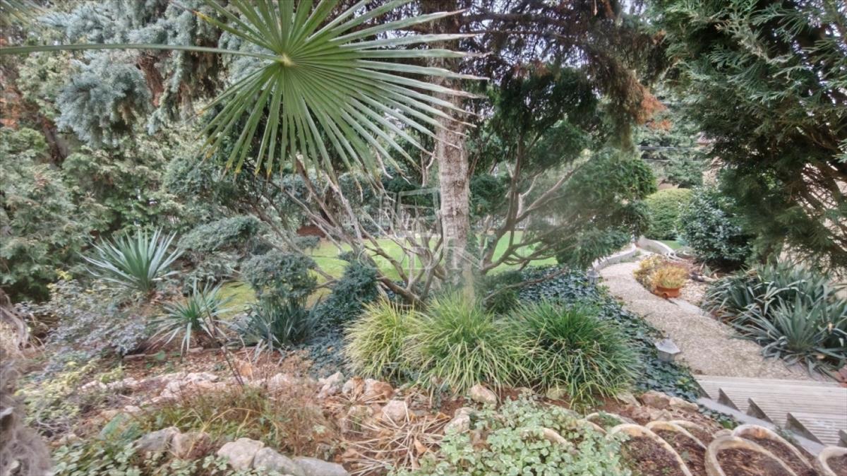 A parkosított kertben automata locsolórendszer és medence található – igazi kertvárosi oázis érett növényállománnyal.
