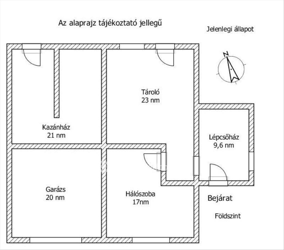 Helyiségei: a földszinten található előtér/lépcsőház, egy hálószoba, egy nagyméretű tároló, mely konyhának van tervezve. Innen nyílhatna egy fürdőszoba. Az emeleten kapott helyet egy tágas konyha étkezővel, 2 szoba, egy fürdőszoba WC-vel és egy különálló mellékhelység! a házban külön található még egy körülbelül 40 m2-es garázs, valamint az udvarban egy 20 m2-es könnyűszerkezetes tároló.